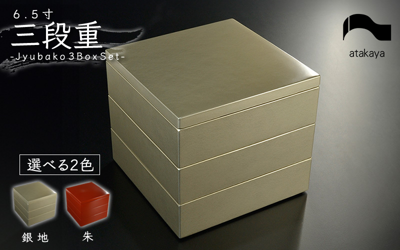 【選べるカラー】6.5寸 三段重 銀地 運動会 ランチボックス 弁当箱 迎春